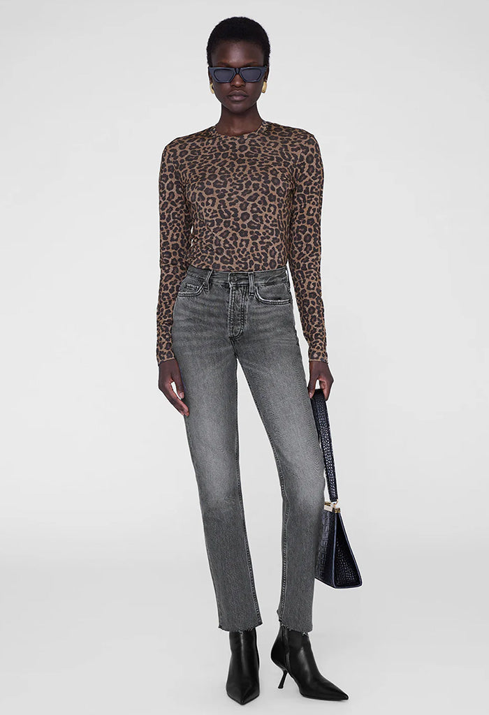 Sylvie Long Sleeve Tee - Black And Brown Leopard