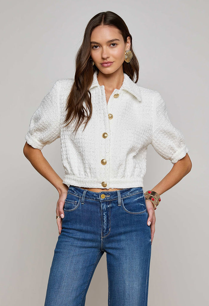 Cove Cropped Tweed Jacket - White
