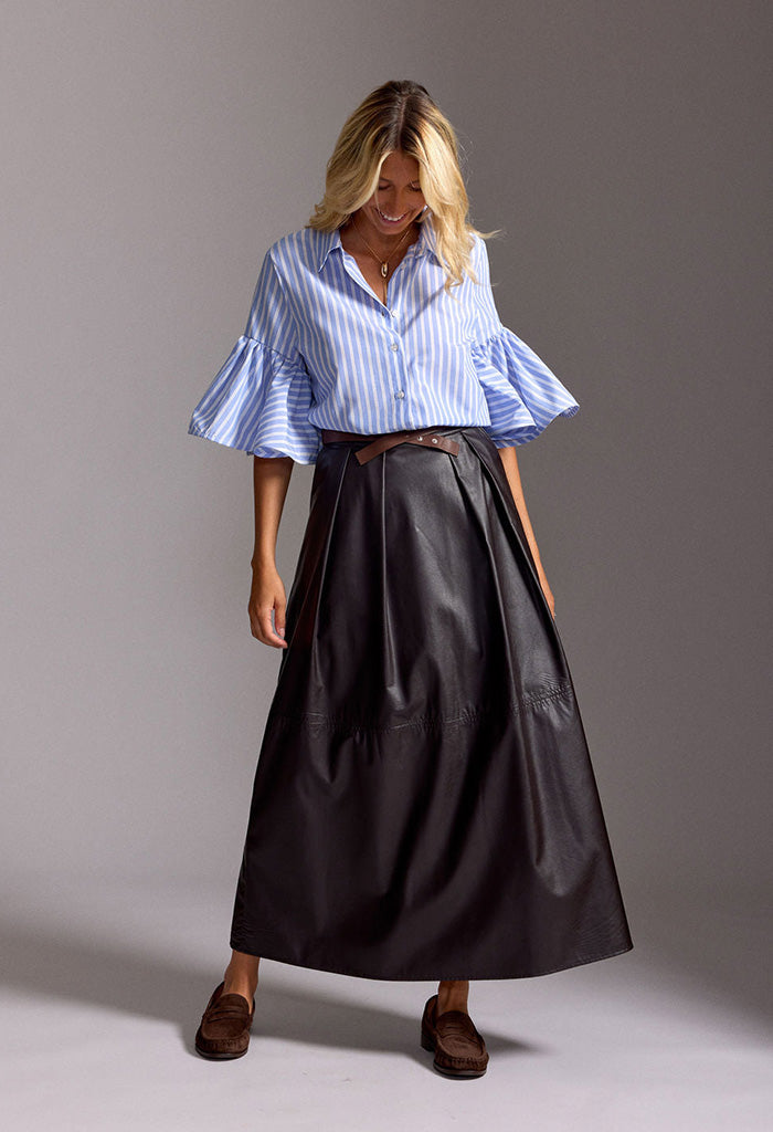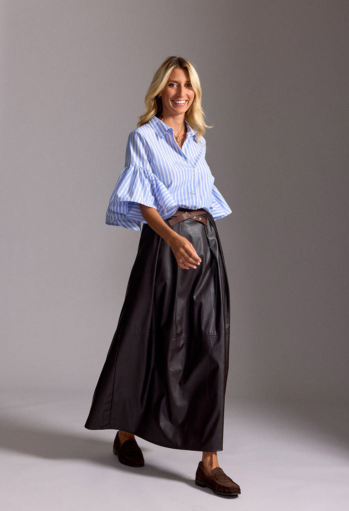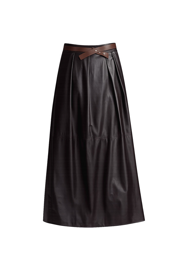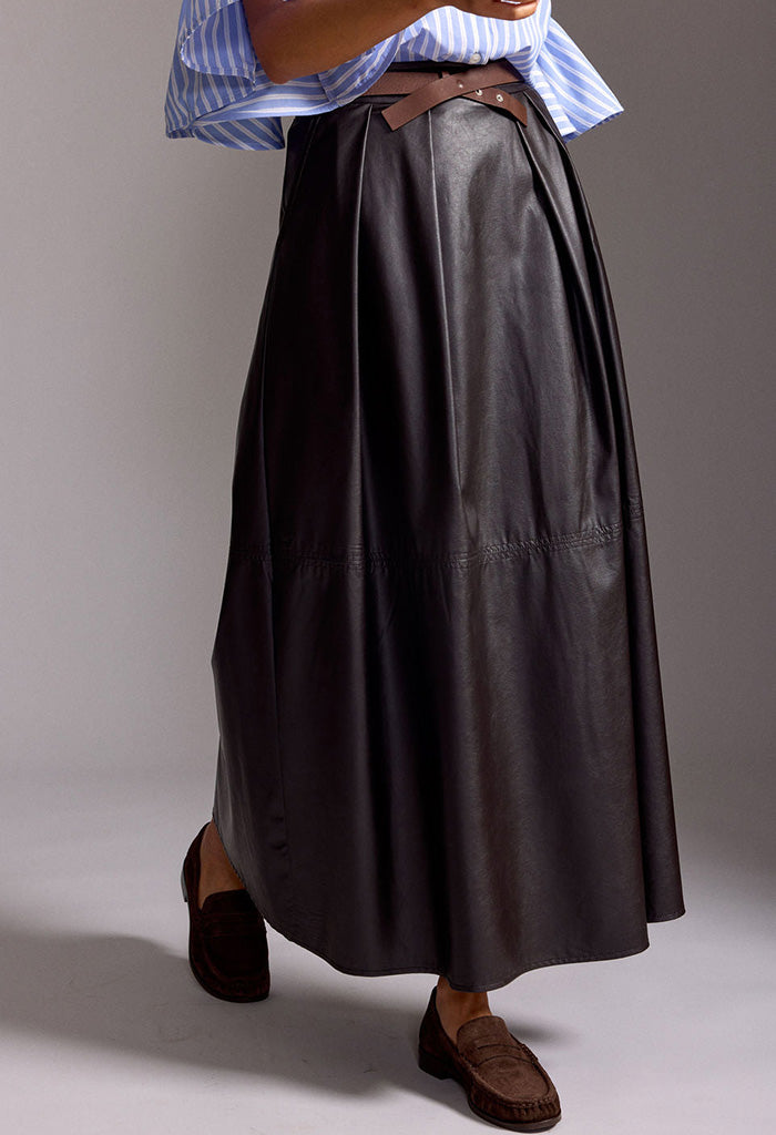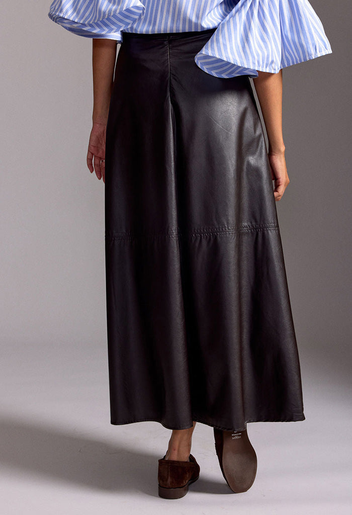 Bruna Long Faux Leather Skirt - Cafe