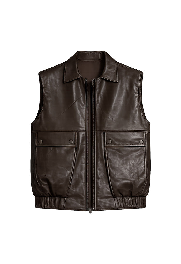 Owen Faux Leather Vest - Coffee