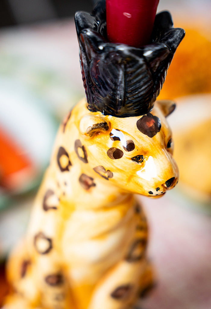 Leopard Ceramic Candlestick Holder