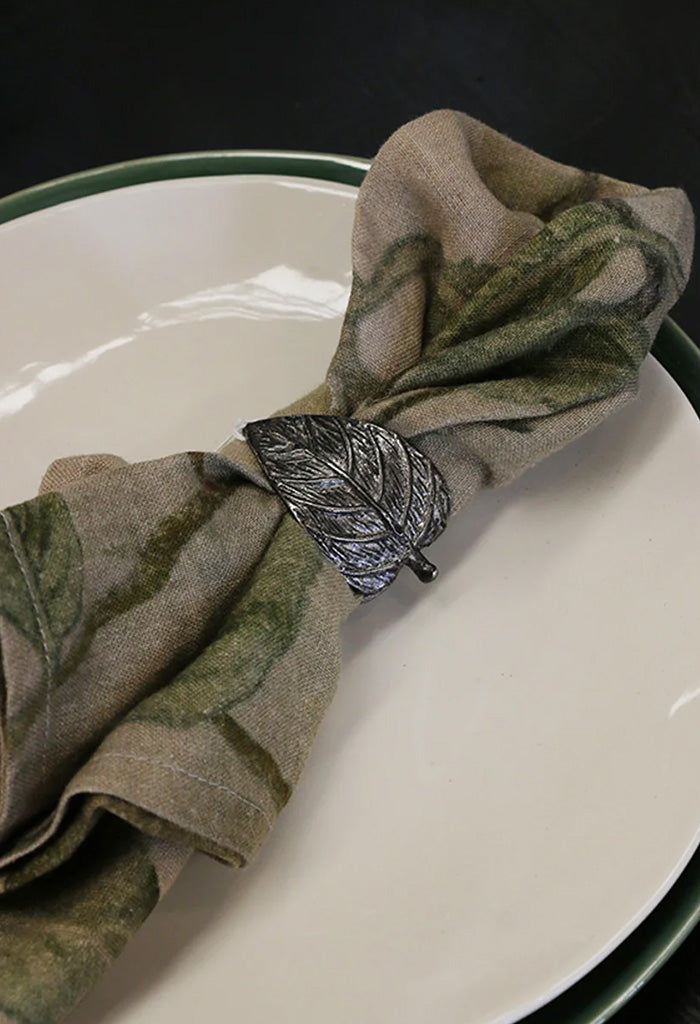 Duo Leaf Napkin Ring - Antique Silver