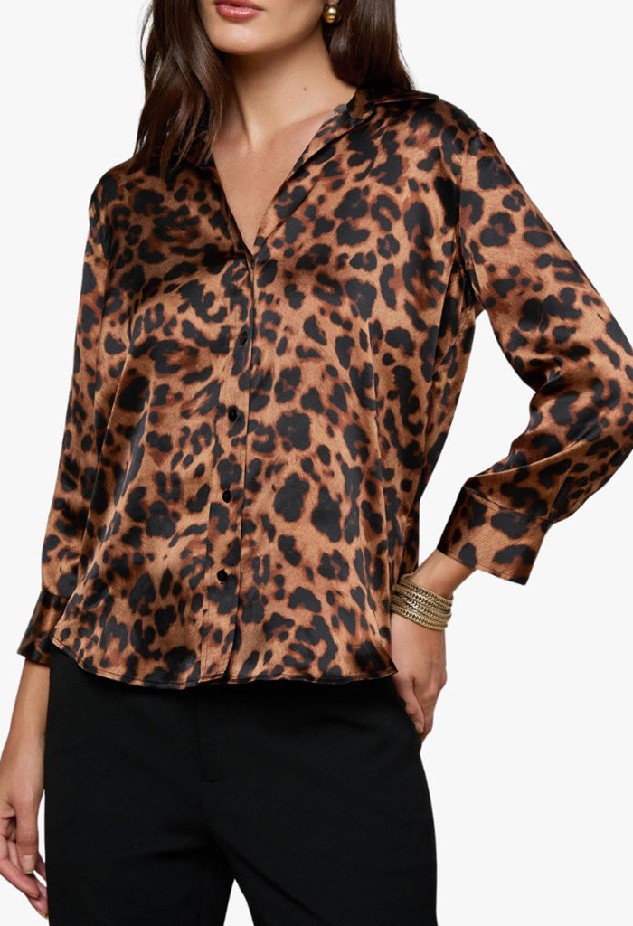 Dani 3/4 Sleeve Blouse - Brown Multi Amur Leopard