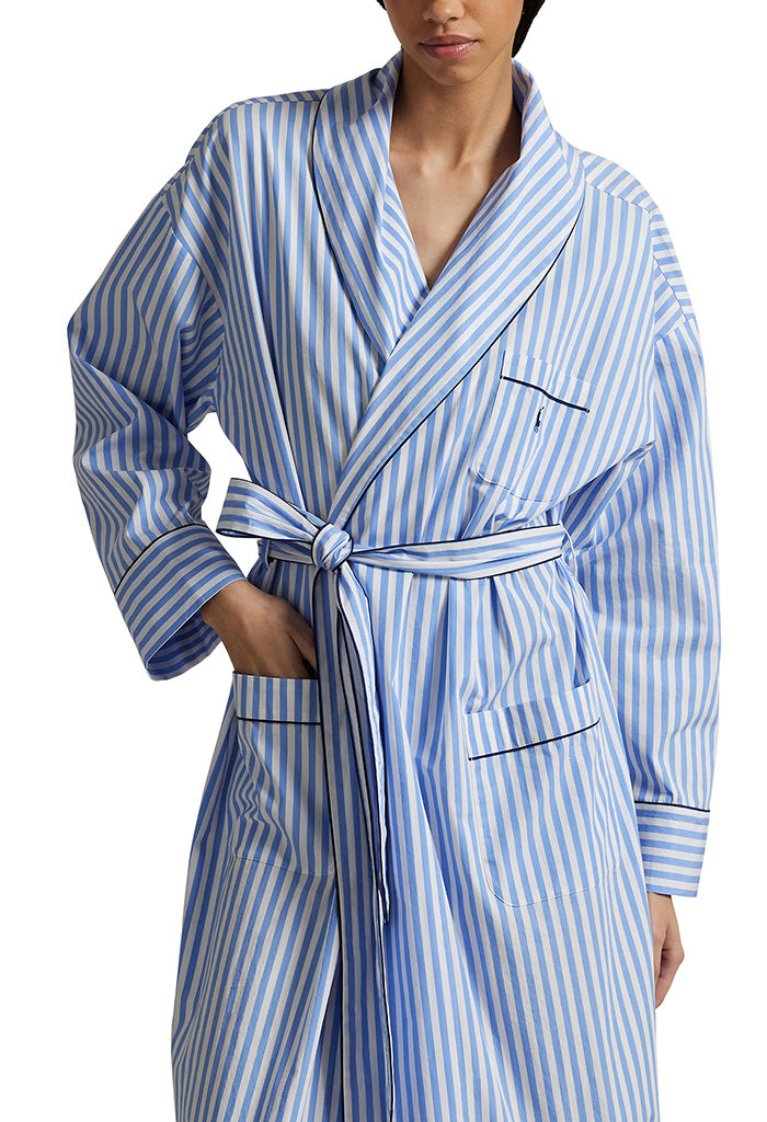 Stripes Heritage Robe - White & Hydrangea